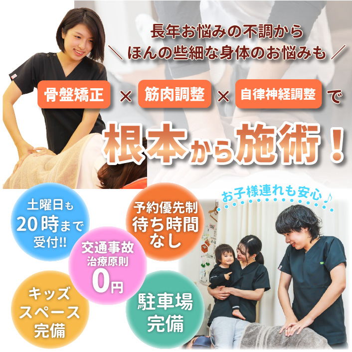 一人一人の症状に合わせたオーダーメイド施術を行い症状を根本から改善いたします